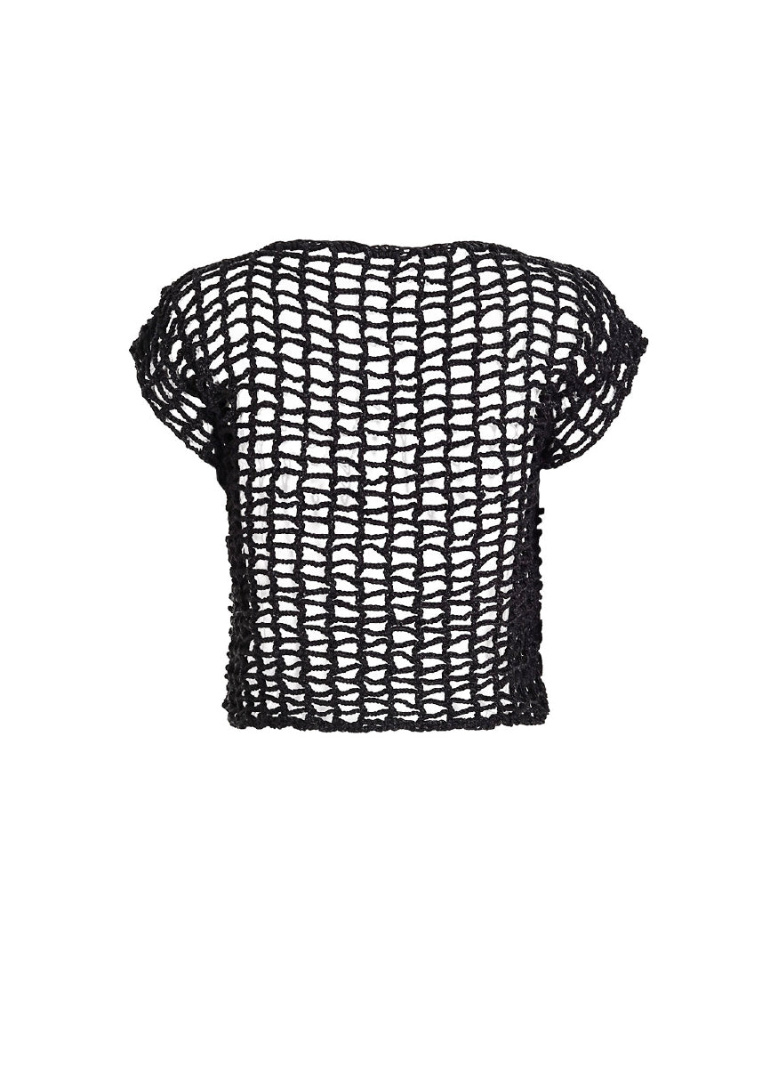 The Sienna Vest is a lightweight open-front crochet piece designed in black yarn. Its wide neckline and short sleeves make it easy to layer over bikinis or resortwear. With a relaxed fit and handcrafted texture, it adds depth and contrast to clean summer looks.