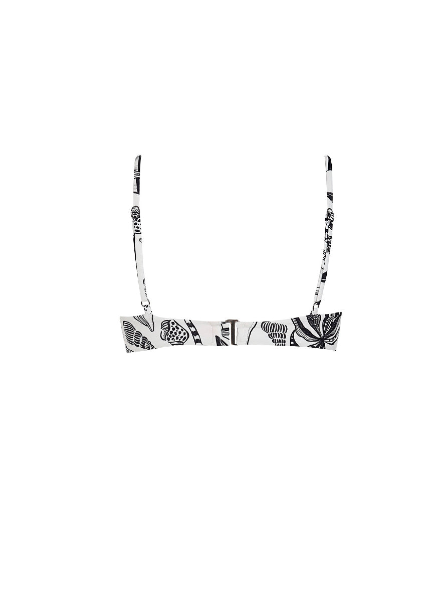 The Sunny Top features a structured balconette shape with underwire support and adjustable straps for a flattering fit. Its clean, straight neckline enhances the bust naturally, while the exclusive La Isla print brings contrast and personality to the look. Finished with a gold clasp at the back, it’s a versatile piece that transitions effortlessly from swim to resortwear.