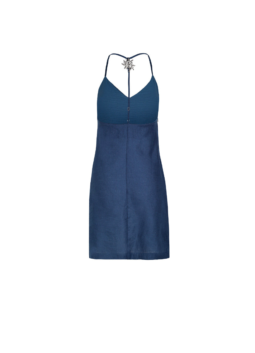 Minimalist yet striking, the Heli Dress is designed to turn heads. Its triangle neckline, side slit, and open back detailing with delicate sun embellishments combine comfort and sensuality. Perfect for layering over swimwear or wearing on its own for sun kissed strolls.