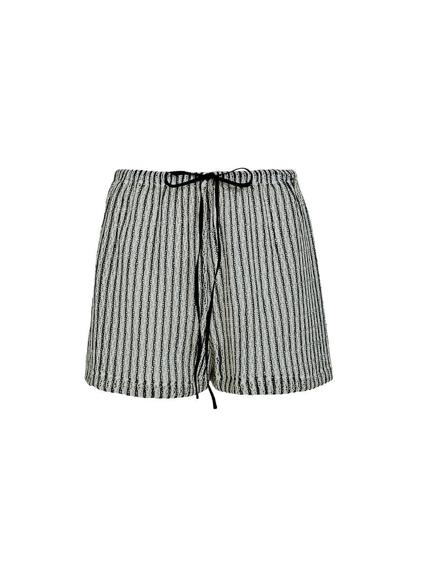 The Gail Short is a knitted style with a soft texture and relaxed fit. Designed with an elastic waistband and drawstring for adjustable comfort, it blends lounge ease with elevated beachwear. Its striped pattern and lightweight finish make it an easy match for resort tops or swimwear.