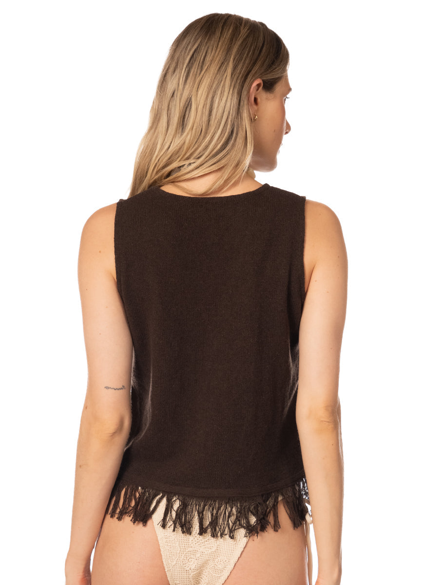 Our Kassandra vest is one of everyones favorite. Crafted in recycled cotton, with a V neckline, coral embroidery and fringes, is the perfect fit for the beach, but matching it with the filipa pant, makes it a perfect piece for the city.